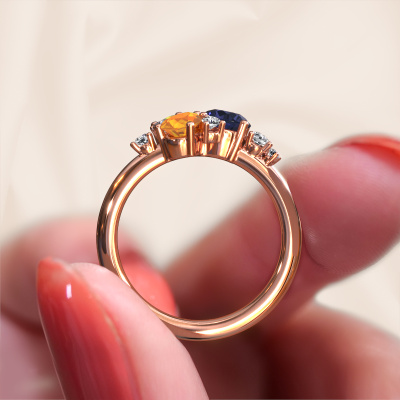 How would you describe your own style? Are you looking for something uniquely different? This royal rose gold Anja ring is astonishing! Simply customize to your or her own liking. This ring is set with sapphire. These sapphire have been carefully selected because your ring must be adorned with nothing but the most beautiful gemstone. Wouldn't you agree? Our expert goldsmith will create your ring in our own crafting studios, where the sapphire will be set with care. The ring will then be polished to perfection to give it that extra sparkle. It's a perfect ring for a woman of excellent taste!The royal Anja ring, as shown here, can be customized to your liking. Our online tool offers many different options but please feel free to contact us if you want changes made to your Anja ring, which are unavailable in our online tool.By using a combination of the latest modern techniques, combined with ancient crafting, we can make all our rings in our own studio. Each jewel is made to order. This is advantageous because we can offer you a price you won't find anywhere else.To make it easier for you, we offer a 30 day return policy. Check our terms and conditions.