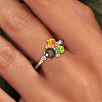How would you describe your own style? Are you looking for something uniquely different? This royal gold Anja ring is astonishing! Simply customize to your or her own liking. This ring is set with smokey quartz. These smokey quartz have been carefully selected because your ring must be adorned with nothing but the most beautiful gemstone. Wouldn't you agree? Our expert goldsmith will create your ring in our own crafting studios, where the smokey quartz will be set with care. The ring will then be polished to perfection to give it that extra sparkle. It's a perfect ring for a woman of excellent taste!The royal Anja ring, as shown here, can be customized to your liking. Our online tool offers many different options but please feel free to contact us if you want changes made to your Anja ring, which are unavailable in our online tool.By using a combination of the latest modern techniques, combined with ancient crafting, we can make all our rings in our own studio. Each jewel is made to order. This is advantageous because we can offer you a price you won't find anywhere else.To make it easier for you, we offer a 30 day return policy. Check our terms and conditions.