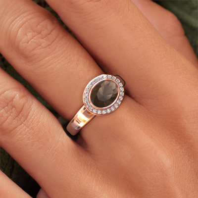 Are you looking for a birthstones ring with an eye-catching single gemstone? How do you like this Salena ring? This rose gold Salena ring is set with a beautiful 8x6 mm oval smokey quartz. The smokey quartz is carefully selected by our smokey quartz suppliers. Subsequently, these birthstones are then set by our goldsmith according to ancient tradition. The ring will then be polished to perfection creating a unique ring with a stunning smokey quartz. Created especially for you. The best part of this birthstones ring is that you can customize it to your own liking. Your style, your choice, your ring. On top of that, your design rose gold ring will be made by hand with eco-friendly materials! Please feel free to easily customize the ring, using our online tool.By using a combination of the latest modern techniques, combined with ancient crafting, we can make all our rings in our own studio. Each jewel is made to order. This is advantageous because we can offer you a price you won't find anywhere else.To make it easier for you, we offer a 30 day return policy. Check our terms and conditions.