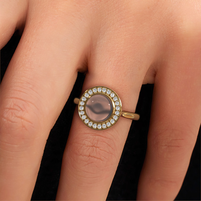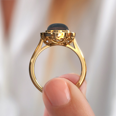 Are you looking for a royal ring with an eye-catching single gemstone? How do you like this Alisa ring? This gold Alisa ring is set with a beautiful 8 mm round cabochon smokey quartz. The smokey quartz is carefully selected by our smokey quartz suppliers. Subsequently, these birthstones are then set by our goldsmith according to ancient tradition. The ring will then be polished to perfection creating a unique ring with a stunning smokey quartz. Created especially for you. A customized fantasy ring is the perfect gift! New exquisite designs are added daily by our team of passionate goldsmiths. And each design can be customized. Simply customize the precious metals and the colour of gemstones which will be used, for example. This makes your design of the fantasy Alisa ring truly unique!Are you on a budget? Please feel free to contact us, so we can go discuss your options. We offer our rings at guaranteed best price, because we make them to order. You won't find such a price anywhere else!To make it easier for you, we offer a 30 day return policy. Check our terms and conditions.