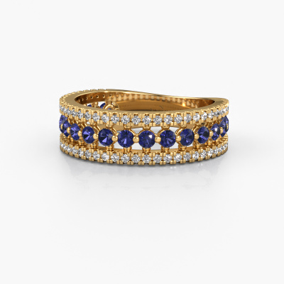 This exclusive gold Elizbeth 1 ring is a true work of art! This ring is made of 14 Carat gold and is set with 2 mm round sapphire. The smallest ornaments are crafted by our goldsmith with a lot of patience and great passion. In order to create this ring with great precision, this craft requires a keen eye and a skilful hand. A challenge which ignites a fire in our expert goldsmiths. The exquisite sapphire are set in a way that their unique qualities are strengthened. This gives the ring an even more glamorous appearance. The ring is unique by itself though, because of the natural birthstones we selected especially for this Elizbeth 1 ring. And by choosing the precious metal yourself, you create a unique ring. The best part of this sparkling ring is that you can customize it to your own liking. Your style, your choice, your ring. On top of that, your vintage gold ring will be made by hand with eco-friendly materials! Please feel free to easily customize the ring, using our online tool.By using a combination of the latest modern techniques, combined with ancient crafting, we can make all our rings in our own studio. Each jewel is made to order. This is advantageous because we can offer you a price you won't find anywhere else.To make it easier for you, we offer a 30 day return policy. Check our terms and conditions.