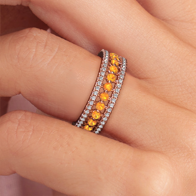This exclusive rose gold Elizbeth 1 ring is a true work of art! This ring is made of 14 Carat rose gold and is set with 2 mm round citrin. The smallest ornaments are crafted by our goldsmith with a lot of patience and great passion. In order to create this ring with great precision, this craft requires a keen eye and a skilful hand. A challenge which ignites a fire in our expert goldsmiths. The exquisite citrin are set in a way that their unique qualities are strengthened. This gives the ring an even more glamorous appearance. The ring is unique by itself though, because of the natural birthstones we selected especially for this Elizbeth 1 ring. And by choosing the precious metal yourself, you create a unique ring. The best part of this sparkling ring is that you can customize it to your own liking. Your style, your choice, your ring. On top of that, your vintage rose gold ring will be made by hand with eco-friendly materials! Please feel free to easily customize the ring, using our online tool.By using a combination of the latest modern techniques, combined with ancient crafting, we can make all our rings in our own studio. Each jewel is made to order. This is advantageous because we can offer you a price you won't find anywhere else.To make it easier for you, we offer a 30 day return policy. Check our terms and conditions.