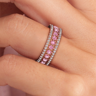 This exclusive rose gold Elizbeth 1 ring is a true work of art! This ring is made of 14 Carat rose gold and is set with 2 mm round pink sapphire. The smallest ornaments are crafted by our goldsmith with a lot of patience and great passion. In order to create this ring with great precision, this craft requires a keen eye and a skilful hand. A challenge which ignites a fire in our expert goldsmiths. The exquisite pink sapphire are set in a way that their unique qualities are strengthened. This gives the ring an even more glamorous appearance. The ring is unique by itself though, because of the natural birthstones we selected especially for this Elizbeth 1 ring. And by choosing the precious metal yourself, you create a unique ring. The best part of this sparkling ring is that you can customize it to your own liking. Your style, your choice, your ring. On top of that, your vintage rose gold ring will be made by hand with eco-friendly materials! Please feel free to easily customize the ring, using our online tool.By using a combination of the latest modern techniques, combined with ancient crafting, we can make all our rings in our own studio. Each jewel is made to order. This is advantageous because we can offer you a price you won't find anywhere else.To make it easier for you, we offer a 30 day return policy. Check our terms and conditions.