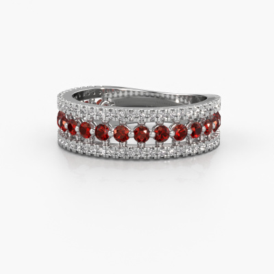 This exclusive white gold Elizbeth 1 ring is a true work of art! This ring is made of 14 Carat white gold and is set with 2 mm round garnet. The smallest ornaments are crafted by our goldsmith with a lot of patience and great passion. In order to create this ring with great precision, this craft requires a keen eye and a skilful hand. A challenge which ignites a fire in our expert goldsmiths. The exquisite garnet are set in a way that their unique qualities are strengthened. This gives the ring an even more glamorous appearance. The ring is unique by itself though, because of the natural birthstones we selected especially for this Elizbeth 1 ring. And by choosing the precious metal yourself, you create a unique ring. The best part of this sparkling ring is that you can customize it to your own liking. Your style, your choice, your ring. On top of that, your vintage white gold ring will be made by hand with eco-friendly materials! Please feel free to easily customize the ring, using our online tool.By using a combination of the latest modern techniques, combined with ancient crafting, we can make all our rings in our own studio. Each jewel is made to order. This is advantageous because we can offer you a price you won't find anywhere else.To make it easier for you, we offer a 30 day return policy. Check our terms and conditions.