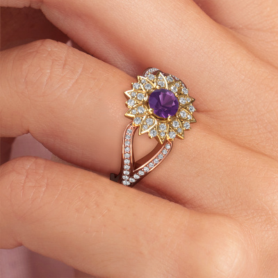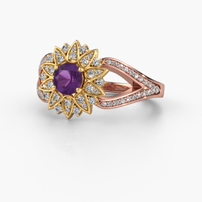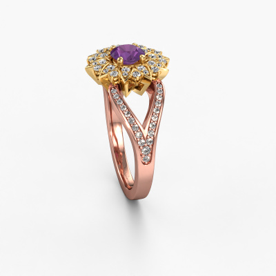 How would you describe your own style? Are you looking for something uniquely different? This special rose gold Chasidy 2 ring is astonishing! Simply customize to your or her own liking. This ring is set with amethyst. These amethysten have been carefully selected because your ring must be adorned with nothing but the most beautiful gemstone. Wouldn't you agree? Our expert goldsmith will create your ring in our own crafting studios, where the amethyst will be set with care. The ring will then be polished to perfection to give it that extra sparkle. It's a perfect ring for a woman of excellent taste!The best part of this special ring is that you can customize it to your own liking. Your style, your choice, your ring. On top of that, your traditional rose gold ring will be made by hand with eco-friendly materials! Please feel free to easily customize the ring, using our online tool.By using a combination of the latest modern techniques, combined with ancient crafting, we can make all our rings in our own studio. Each jewel is made to order. This is advantageous because we can offer you a price you won't find anywhere else.To make it easier for you, we offer a 30 day return policy. Check our terms and conditions.