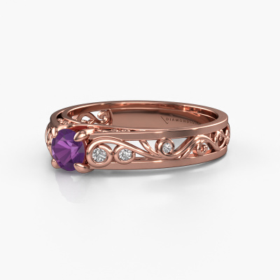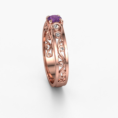 Do you have a vintage fetish? Then this rose gold Quinty ring suits you perfectly. It's a contemporary design, based on vintage designs. A slightly romantic, extraordinary design! Even more when you customize to your liking. This special ring is set with exquisite amethysten. As you can see, you can simply choose a gemstone that matches your style. Each gemstone is carefully selected by our merchants whom are spread throughout the world. Nothing but the best gems for our expert goldsmith! After all, it is his crowning glory!The special Quinty ring, as shown here, can be customized to your liking. Our online tool offers many different options but please feel free to contact us if you want changes made to your Quinty ring, which are unavailable in our online tool.By using a combination of the latest modern techniques, combined with ancient crafting, we can make all our rings in our own studio. Each jewel is made to order. This is advantageous because we can offer you a price you won't find anywhere else.To make it easier for you, we offer a 30 day return policy. Check our terms and conditions.