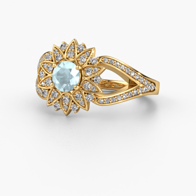 How would you describe your own style? Are you looking for something uniquely different? This special gold Chasidy 2 ring is astonishing! Simply customize to your or her own liking. This ring is set with aquamarine. These aquamarine have been carefully selected because your ring must be adorned with nothing but the most beautiful gemstone. Wouldn't you agree? Our expert goldsmith will create your ring in our own crafting studios, where the aquamarine will be set with care. The ring will then be polished to perfection to give it that extra sparkle. It's a perfect ring for a woman of excellent taste!The best part of this special ring is that you can customize it to your own liking. Your style, your choice, your ring. On top of that, your traditional gold ring will be made by hand with eco-friendly materials! Please feel free to easily customize the ring, using our online tool.By using a combination of the latest modern techniques, combined with ancient crafting, we can make all our rings in our own studio. Each jewel is made to order. This is advantageous because we can offer you a price you won't find anywhere else.To make it easier for you, we offer a 30 day return policy. Check our terms and conditions.