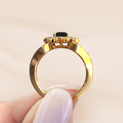 How would you describe your own style? Are you looking for something uniquely different? This special gold Chasidy 2 ring is astonishing! Simply customize to your or her own liking. This ring is set with black diamond. These black diamonds have been carefully selected because your ring must be adorned with nothing but the most beautiful gemstone. Wouldn't you agree? Our expert goldsmith will create your ring in our own crafting studios, where the black diamond will be set with care. The ring will then be polished to perfection to give it that extra sparkle. It's a perfect ring for a woman of excellent taste!The best part of this special ring is that you can customize it to your own liking. Your style, your choice, your ring. On top of that, your traditional gold ring will be made by hand with eco-friendly materials! Please feel free to easily customize the ring, using our online tool.By using a combination of the latest modern techniques, combined with ancient crafting, we can make all our rings in our own studio. Each jewel is made to order. This is advantageous because we can offer you a price you won't find anywhere else.To make it easier for you, we offer a 30 day return policy. Check our terms and conditions.