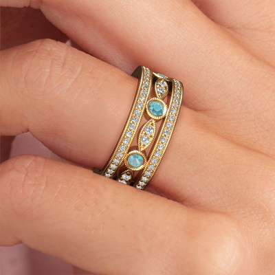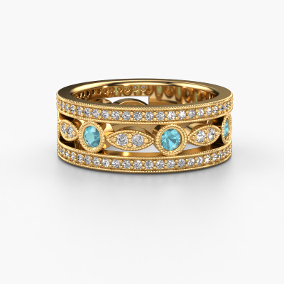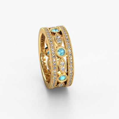 Do you have a vintage fetish? Then this gold Jessica ring suits you perfectly. It's a contemporary design, based on vintage designs. A slightly romantic, extraordinary design! Even more when you customize to your liking. This special ring is set with exquisite blue topaz. As you can see, you can simply choose a gemstone that matches your style. Each gemstone is carefully selected by our merchants whom are spread throughout the world. Nothing but the best gems for our expert goldsmith! After all, it is his crowning glory!The special Jessica ring, as shown here, can be customized to your liking. Our online tool offers many different options but please feel free to contact us if you want changes made to your Jessica ring, which are unavailable in our online tool.Because we design and deliver our own rings, we can offer you a ring at a price you won't find anywhere else. A ring is made to order, which helps prevent excess supplies, so we can make you a great price offer. We understand it feels risky, buying your ring online, but we will gladly assist in the designing process, taking your budget into consideration.To make it easier for you, we offer a 30 day return policy. Check our terms and conditions.