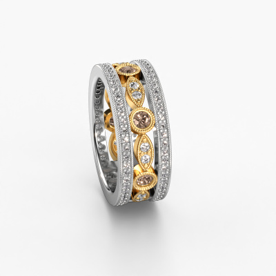 Do you have a vintage fetish? Then this white gold Jessica ring suits you perfectly. It's a contemporary design, based on vintage designs. A slightly romantic, extraordinary design! Even more when you customize to your liking. This special ring is set with exquisite brown diamonds. As you can see, you can simply choose a gemstone that matches your style. Each gemstone is carefully selected by our merchants whom are spread throughout the world. Nothing but the best gems for our expert goldsmith! After all, it is his crowning glory!The special Jessica ring, as shown here, can be customized to your liking. Our online tool offers many different options but please feel free to contact us if you want changes made to your Jessica ring, which are unavailable in our online tool.Because we design and deliver our own rings, we can offer you a ring at a price you won't find anywhere else. A ring is made to order, which helps prevent excess supplies, so we can make you a great price offer. We understand it feels risky, buying your ring online, but we will gladly assist in the designing process, taking your budget into consideration.To make it easier for you, we offer a 30 day return policy. Check our terms and conditions.