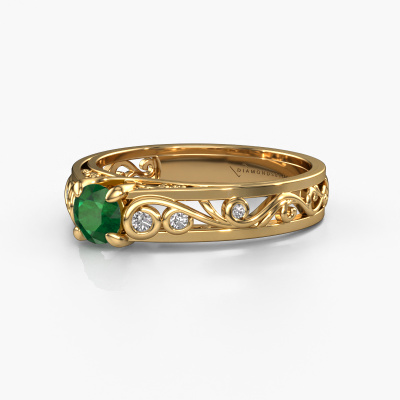Do you have a vintage fetish? Then this gold Quinty ring suits you perfectly. It's a contemporary design, based on vintage designs. A slightly romantic, extraordinary design! Even more when you customize to your liking. This special ring is set with exquisite emerald. As you can see, you can simply choose a gemstone that matches your style. Each gemstone is carefully selected by our merchants whom are spread throughout the world. Nothing but the best gems for our expert goldsmith! After all, it is his crowning glory!The special Quinty ring, as shown here, can be customized to your liking. Our online tool offers many different options but please feel free to contact us if you want changes made to your Quinty ring, which are unavailable in our online tool.By using a combination of the latest modern techniques, combined with ancient crafting, we can make all our rings in our own studio. Each jewel is made to order. This is advantageous because we can offer you a price you won't find anywhere else.To make it easier for you, we offer a 30 day return policy. Check our terms and conditions.