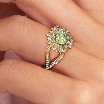 How would you describe your own style? Are you looking for something uniquely different? This special gold Chasidy 2 ring is astonishing! Simply customize to your or her own liking. This ring is set with green lab grown diamond. These green lab grown diamonds have been carefully selected because your ring must be adorned with nothing but the most beautiful gemstone. Wouldn't you agree? Our expert goldsmith will create your ring in our own crafting studios, where the green lab grown diamond will be set with care. The ring will then be polished to perfection to give it that extra sparkle. It's a perfect ring for a woman of excellent taste!The best part of this special ring is that you can customize it to your own liking. Your style, your choice, your ring. On top of that, your traditional gold ring will be made by hand with eco-friendly materials! Please feel free to easily customize the ring, using our online tool.By using a combination of the latest modern techniques, combined with ancient crafting, we can make all our rings in our own studio. Each jewel is made to order. This is advantageous because we can offer you a price you won't find anywhere else.To make it easier for you, we offer a 30 day return policy. Check our terms and conditions.
