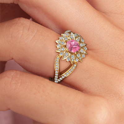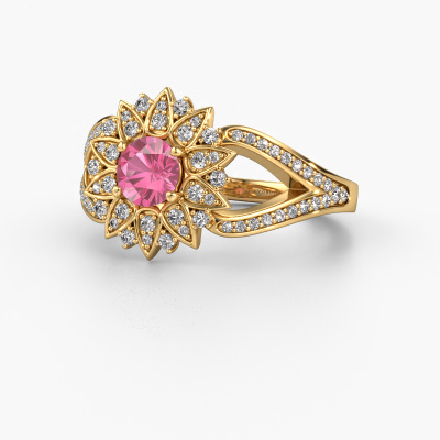 How would you describe your own style? Are you looking for something uniquely different? This special gold Chasidy 2 ring is astonishing! Simply customize to your or her own liking. This ring is set with pink sapphire. These pink sapphire have been carefully selected because your ring must be adorned with nothing but the most beautiful gemstone. Wouldn't you agree? Our expert goldsmith will create your ring in our own crafting studios, where the pink sapphire will be set with care. The ring will then be polished to perfection to give it that extra sparkle. It's a perfect ring for a woman of excellent taste!The best part of this special ring is that you can customize it to your own liking. Your style, your choice, your ring. On top of that, your traditional gold ring will be made by hand with eco-friendly materials! Please feel free to easily customize the ring, using our online tool.By using a combination of the latest modern techniques, combined with ancient crafting, we can make all our rings in our own studio. Each jewel is made to order. This is advantageous because we can offer you a price you won't find anywhere else.To make it easier for you, we offer a 30 day return policy. Check our terms and conditions.