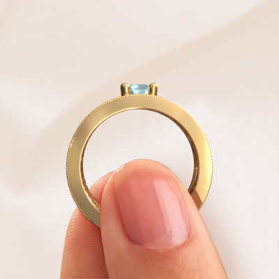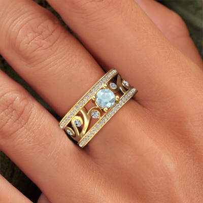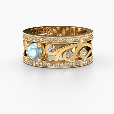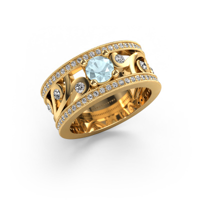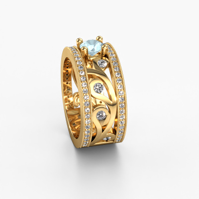 Do you have a vintage fetish? Then this gold Sanne ring suits you perfectly. It's a contemporary design, based on vintage designs. A slightly romantic, extraordinary design! Even more when you customize to your liking. This special ring is set with exquisite aquamarine. As you can see, you can simply choose a gemstone that matches your style. Each gemstone is carefully selected by our merchants whom are spread throughout the world. Nothing but the best gems for our expert goldsmith! After all, it is his crowning glory!Customize your own specialSanne ring, which will then be created by our goldsmiths with great passion. Do you prefer a different option than is shown here in the gold Sanne ring? Then our online tools offers various options. Feel free to ask us for help if you are unable to succeed. We are happy to answer your questions!After receiving your order, our goldsmiths will start the creative process of making your Sanne ring. We don't keep stock. This is advantageous because these costs will not be passed on to you. Therefore, we can offer jewellery at exceptionally low prices.To make it easier for you, we offer a 30 day return policy. Check our terms and conditions.