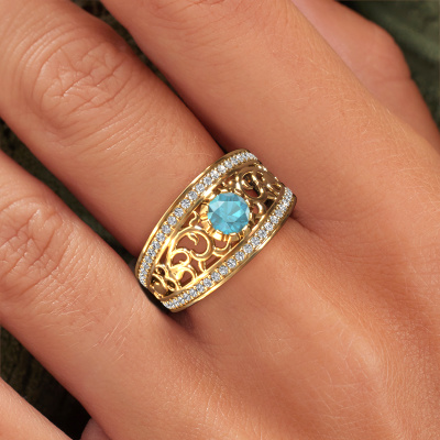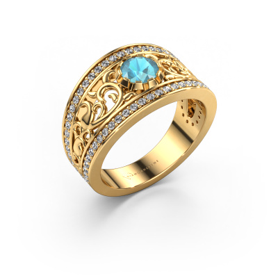 Do you have a vintage fetish? Then this gold Marilee ring suits you perfectly. It's a contemporary design, based on vintage designs. A slightly romantic, extraordinary design! Even more when you customize to your liking. This special ring is set with exquisite blue topaz. As you can see, you can simply choose a gemstone that matches your style. Each gemstone is carefully selected by our merchants whom are spread throughout the world. Nothing but the best gems for our expert goldsmith! After all, it is his crowning glory!A customized vintage ring is the perfect gift! New exquisite designs are added daily by our team of passionate goldsmiths. And each design can be customized. Simply customize the precious metals and the colour of gemstones which will be used, for example. This makes your design of the vintage Marilee ring truly unique!After receiving your order, our goldsmiths will passionately start the creative process of making your ring in our own studio. Because we don't have a big stockpile, these costs will not be passed on to you. Our pricing is proof of that! We offer top quality jewels at lowest price, guaranteed.To make it easier for you, we offer a 30 day return policy. Check our terms and conditions.