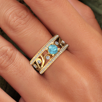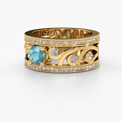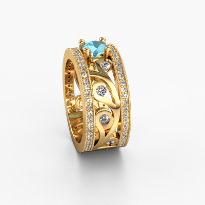 Do you have a vintage fetish? Then this gold Sanne ring suits you perfectly. It's a contemporary design, based on vintage designs. A slightly romantic, extraordinary design! Even more when you customize to your liking. This special ring is set with exquisite blue topaz. As you can see, you can simply choose a gemstone that matches your style. Each gemstone is carefully selected by our merchants whom are spread throughout the world. Nothing but the best gems for our expert goldsmith! After all, it is his crowning glory!Customize your own specialSanne ring, which will then be created by our goldsmiths with great passion. Do you prefer a different option than is shown here in the gold Sanne ring? Then our online tools offers various options. Feel free to ask us for help if you are unable to succeed. We are happy to answer your questions!After receiving your order, our goldsmiths will start the creative process of making your Sanne ring. We don't keep stock. This is advantageous because these costs will not be passed on to you. Therefore, we can offer jewellery at exceptionally low prices.To make it easier for you, we offer a 30 day return policy. Check our terms and conditions.