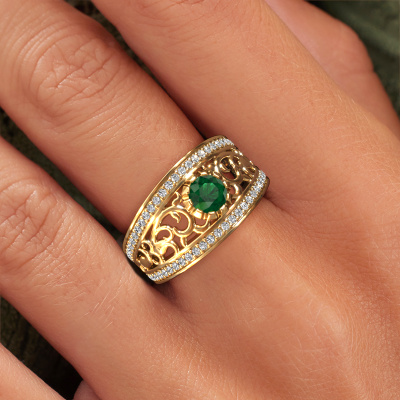 Do you have a vintage fetish? Then this gold Marilee ring suits you perfectly. It's a contemporary design, based on vintage designs. A slightly romantic, extraordinary design! Even more when you customize to your liking. This special ring is set with exquisite emerald. As you can see, you can simply choose a gemstone that matches your style. Each gemstone is carefully selected by our merchants whom are spread throughout the world. Nothing but the best gems for our expert goldsmith! After all, it is his crowning glory!A customized vintage ring is the perfect gift! New exquisite designs are added daily by our team of passionate goldsmiths. And each design can be customized. Simply customize the precious metals and the colour of gemstones which will be used, for example. This makes your design of the vintage Marilee ring truly unique!After receiving your order, our goldsmiths will passionately start the creative process of making your ring in our own studio. Because we don't have a big stockpile, these costs will not be passed on to you. Our pricing is proof of that! We offer top quality jewels at lowest price, guaranteed.To make it easier for you, we offer a 30 day return policy. Check our terms and conditions.