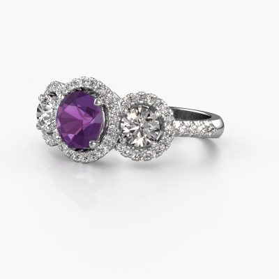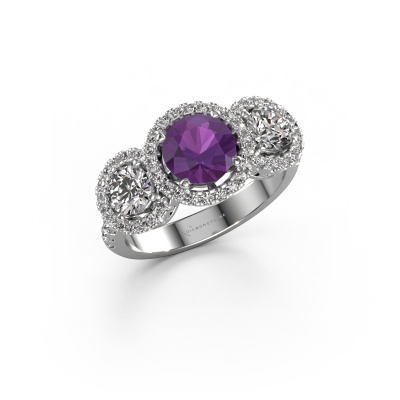This exclusive platinum Lacie ring is a true work of art! This ring is made of platinum and is set with 6.5 mm round amethyst. The smallest ornaments are crafted by our goldsmith with a lot of patience and great passion. In order to create this ring with great precision, this craft requires a keen eye and a skilful hand. A challenge which ignites a fire in our expert goldsmiths. The exquisite amethysten are set in a way that their unique qualities are strengthened. This gives the ring an even more glamorous appearance. The ring is unique by itself though, because of the natural birthstones we selected especially for this Lacie ring. And by choosing the precious metal yourself, you create a unique ring. Customize your own specialLacie ring, which will then be created by our goldsmiths with great passion. Do you prefer a different option than is shown here in the platinum Lacie ring? Then our online tools offers various options. Feel free to ask us for help if you are unable to succeed. We are happy to answer your questions!Because we design and deliver our own rings, we can offer you a ring at a price you won't find anywhere else. A ring is made to order, which helps prevent excess supplies, so we can make you a great price offer. We understand it feels risky, buying your ring online, but we will gladly assist in the designing process, taking your budget into consideration.To make it easier for you, we offer a 30 day return policy. Check our terms and conditions.