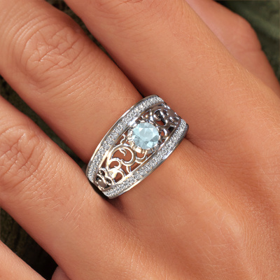 Do you have a vintage fetish? Then this platinum Marilee ring suits you perfectly. It's a contemporary design, based on vintage designs. A slightly romantic, extraordinary design! Even more when you customize to your liking. This special ring is set with exquisite aquamarine. As you can see, you can simply choose a gemstone that matches your style. Each gemstone is carefully selected by our merchants whom are spread throughout the world. Nothing but the best gems for our expert goldsmith! After all, it is his crowning glory!A customized vintage ring is the perfect gift! New exquisite designs are added daily by our team of passionate goldsmiths. And each design can be customized. Simply customize the precious metals and the colour of gemstones which will be used, for example. This makes your design of the vintage Marilee ring truly unique!After receiving your order, our goldsmiths will passionately start the creative process of making your ring in our own studio. Because we don't have a big stockpile, these costs will not be passed on to you. Our pricing is proof of that! We offer top quality jewels at lowest price, guaranteed.To make it easier for you, we offer a 30 day return policy. Check our terms and conditions.
