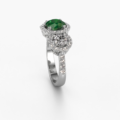 This exclusive platinum Lacie ring is a true work of art! This ring is made of platinum and is set with 6.5 mm round emerald. The smallest ornaments are crafted by our goldsmith with a lot of patience and great passion. In order to create this ring with great precision, this craft requires a keen eye and a skilful hand. A challenge which ignites a fire in our expert goldsmiths. The exquisite emerald are set in a way that their unique qualities are strengthened. This gives the ring an even more glamorous appearance. The ring is unique by itself though, because of the natural birthstones we selected especially for this Lacie ring. And by choosing the precious metal yourself, you create a unique ring. Customize your own specialLacie ring, which will then be created by our goldsmiths with great passion. Do you prefer a different option than is shown here in the platinum Lacie ring? Then our online tools offers various options. Feel free to ask us for help if you are unable to succeed. We are happy to answer your questions!Because we design and deliver our own rings, we can offer you a ring at a price you won't find anywhere else. A ring is made to order, which helps prevent excess supplies, so we can make you a great price offer. We understand it feels risky, buying your ring online, but we will gladly assist in the designing process, taking your budget into consideration.To make it easier for you, we offer a 30 day return policy. Check our terms and conditions.