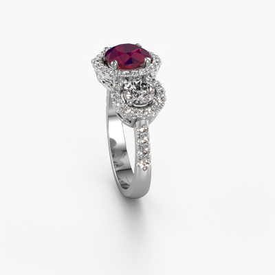 This exclusive platinum Lacie ring is a true work of art! This ring is made of platinum and is set with 6.5 mm round rhodolite. The smallest ornaments are crafted by our goldsmith with a lot of patience and great passion. In order to create this ring with great precision, this craft requires a keen eye and a skilful hand. A challenge which ignites a fire in our expert goldsmiths. The exquisite rhodolite are set in a way that their unique qualities are strengthened. This gives the ring an even more glamorous appearance. The ring is unique by itself though, because of the natural birthstones we selected especially for this Lacie ring. And by choosing the precious metal yourself, you create a unique ring. Customize your own specialLacie ring, which will then be created by our goldsmiths with great passion. Do you prefer a different option than is shown here in the platinum Lacie ring? Then our online tools offers various options. Feel free to ask us for help if you are unable to succeed. We are happy to answer your questions!Because we design and deliver our own rings, we can offer you a ring at a price you won't find anywhere else. A ring is made to order, which helps prevent excess supplies, so we can make you a great price offer. We understand it feels risky, buying your ring online, but we will gladly assist in the designing process, taking your budget into consideration.To make it easier for you, we offer a 30 day return policy. Check our terms and conditions.