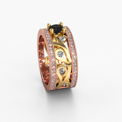 Do you have a vintage fetish? Then this rose gold Sanne ring suits you perfectly. It's a contemporary design, based on vintage designs. A slightly romantic, extraordinary design! Even more when you customize to your liking. This special ring is set with exquisite black diamonds. As you can see, you can simply choose a gemstone that matches your style. Each gemstone is carefully selected by our merchants whom are spread throughout the world. Nothing but the best gems for our expert goldsmith! After all, it is his crowning glory!Customize your own specialSanne ring, which will then be created by our goldsmiths with great passion. Do you prefer a different option than is shown here in the rose gold Sanne ring? Then our online tools offers various options. Feel free to ask us for help if you are unable to succeed. We are happy to answer your questions!After receiving your order, our goldsmiths will start the creative process of making your Sanne ring. We don't keep stock. This is advantageous because these costs will not be passed on to you. Therefore, we can offer jewellery at exceptionally low prices.To make it easier for you, we offer a 30 day return policy. Check our terms and conditions.