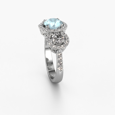 This exclusive white gold Lacie ring is a true work of art! This ring is made of 14 Carat white gold and is set with 6.5 mm round aquamarine. The smallest ornaments are crafted by our goldsmith with a lot of patience and great passion. In order to create this ring with great precision, this craft requires a keen eye and a skilful hand. A challenge which ignites a fire in our expert goldsmiths. The exquisite aquamarine are set in a way that their unique qualities are strengthened. This gives the ring an even more glamorous appearance. The ring is unique by itself though, because of the natural birthstones we selected especially for this Lacie ring. And by choosing the precious metal yourself, you create a unique ring. Customize your own specialLacie ring, which will then be created by our goldsmiths with great passion. Do you prefer a different option than is shown here in the white gold Lacie ring? Then our online tools offers various options. Feel free to ask us for help if you are unable to succeed. We are happy to answer your questions!Because we design and deliver our own rings, we can offer you a ring at a price you won't find anywhere else. A ring is made to order, which helps prevent excess supplies, so we can make you a great price offer. We understand it feels risky, buying your ring online, but we will gladly assist in the designing process, taking your budget into consideration.To make it easier for you, we offer a 30 day return policy. Check our terms and conditions.