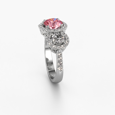 This exclusive white gold Lacie ring is a true work of art! This ring is made of 14 Carat white gold and is set with 6.5 mm round pink lab grown diamond. The smallest ornaments are crafted by our goldsmith with a lot of patience and great passion. In order to create this ring with great precision, this craft requires a keen eye and a skilful hand. A challenge which ignites a fire in our expert goldsmiths. The exquisite pink lab grown diamonds are set in a way that their unique qualities are strengthened. This gives the ring an even more glamorous appearance. The ring is unique by itself though, because of the natural birthstones we selected especially for this Lacie ring. And by choosing the precious metal yourself, you create a unique ring. Customize your own specialLacie ring, which will then be created by our goldsmiths with great passion. Do you prefer a different option than is shown here in the white gold Lacie ring? Then our online tools offers various options. Feel free to ask us for help if you are unable to succeed. We are happy to answer your questions!Because we design and deliver our own rings, we can offer you a ring at a price you won't find anywhere else. A ring is made to order, which helps prevent excess supplies, so we can make you a great price offer. We understand it feels risky, buying your ring online, but we will gladly assist in the designing process, taking your budget into consideration.To make it easier for you, we offer a 30 day return policy. Check our terms and conditions.