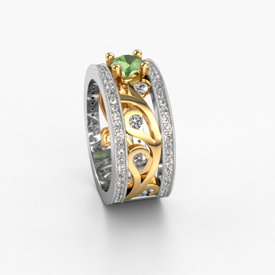 Do you have a vintage fetish? Then this white gold Sanne ring suits you perfectly. It's a contemporary design, based on vintage designs. A slightly romantic, extraordinary design! Even more when you customize to your liking. This special ring is set with exquisite tourmaline green. As you can see, you can simply choose a gemstone that matches your style. Each gemstone is carefully selected by our merchants whom are spread throughout the world. Nothing but the best gems for our expert goldsmith! After all, it is his crowning glory!Customize your own specialSanne ring, which will then be created by our goldsmiths with great passion. Do you prefer a different option than is shown here in the white gold Sanne ring? Then our online tools offers various options. Feel free to ask us for help if you are unable to succeed. We are happy to answer your questions!After receiving your order, our goldsmiths will start the creative process of making your Sanne ring. We don't keep stock. This is advantageous because these costs will not be passed on to you. Therefore, we can offer jewellery at exceptionally low prices.To make it easier for you, we offer a 30 day return policy. Check our terms and conditions.