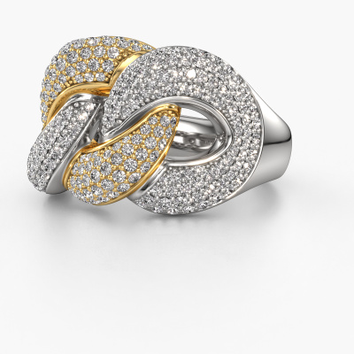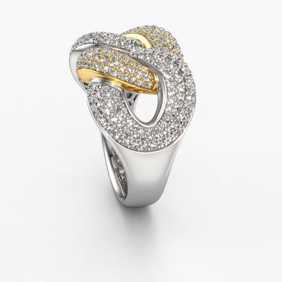This pave set ring is called Kylie 3 15mm. This 14 Carat white gold ring is set with cz-stones 0.8 mm. The band of this white gold ring is set with rows of cz-stones which seem to have no beginning nor end. Our goldsmith carefully selects the