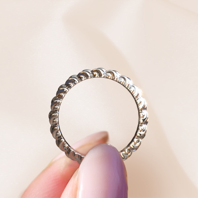 This platinum Vera stackable ring is the perfect addition to your ring collection! As the name suggests, it is a ring which can be combined on one finger with another ring. It gives you the opportunity to create your own style. A stacked ring usually represents a certain memory of someone special or a memorable moment. It is common to combine a stacked ring, representing an anniversary, with a ring. But this special ring, combined with your other rings, also makes a classy fashion item. The special Vera stackable ring, as shown here, can be customized to your liking. Our online tool offers many different options but please feel free to contact us if you want changes made to your Vera stackable ring, which are unavailable in our online tool.By using our modern techniques, we can design and customize the finest quality jewels with the utmost care for you. Our rings are always priced 30 percent lower than other jewellers. We make rings to order, so we don't have to maintain a large stock. If you have a certain budget, we are more than happy to advice you accordingly.To make it easier for you, we offer a 30 day return policy. Check our terms and conditions.