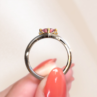 This ring called Arlette is made of 14 Carat white gold and is set with tourmaline pink. Are you in the market for a unique white gold ring with a modern twist? Then this ring might suit you. Simply customize to your or her liking. It suits the