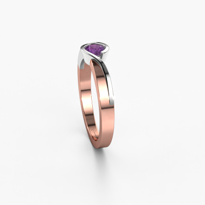 This ring called Lola is made of 14 Carat rose gold and is set with amethyst. Are you in the market for a unique rose gold ring with a modern twist? Then this ring might suit you. Simply customize to your or her liking. It suits the contemporary modern woman. This stylish ring is set with beautiful amethyst. This has been carefully selected. Because your ring must be adorned with nothing but the most stunning gemstone. Our expert goldsmith will create your ring in our own studio, where the amethyst will be set with great care. The ring will then be polished to perfection to create a stunning ring. Because we design and deliver our own rings, we can offer you a ring at a price you won't find anywhere else. A ring is made to order, which helps prevent excess supplies, so we can make you a great price offer. We understand it feels risky, buying your ring online, but we will gladly assist in the designing process, taking your budget into consideration.Our team of talented, passionate designers add new ring designs to our online collection daily. Our objective in doing so, is to be able to offer you a wide variety of jewels. Please feel free to request a quote if you have specific wishes for your ring. We guarantee to make you an offer you can't refuse.To make it easier for you, we offer a 30 day return policy. Check our terms and conditions.