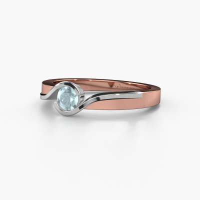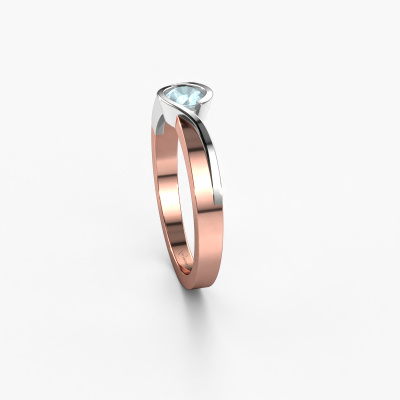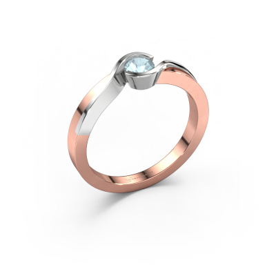 This ring called Lola is made of 14 Carat rose gold and is set with aquamarine. Are you in the market for a unique rose gold ring with a modern twist? Then this ring might suit you. Simply customize to your or her liking. It suits the contemporary modern woman. This stylish ring is set with beautiful aquamarine. This has been carefully selected. Because your ring must be adorned with nothing but the most stunning gemstone. Our expert goldsmith will create your ring in our own studio, where the aquamarine will be set with great care. The ring will then be polished to perfection to create a stunning ring. Because we design and deliver our own rings, we can offer you a ring at a price you won't find anywhere else. A ring is made to order, which helps prevent excess supplies, so we can make you a great price offer. We understand it feels risky, buying your ring online, but we will gladly assist in the designing process, taking your budget into consideration.Our team of talented, passionate designers add new ring designs to our online collection daily. Our objective in doing so, is to be able to offer you a wide variety of jewels. Please feel free to request a quote if you have specific wishes for your ring. We guarantee to make you an offer you can't refuse.To make it easier for you, we offer a 30 day return policy. Check our terms and conditions.