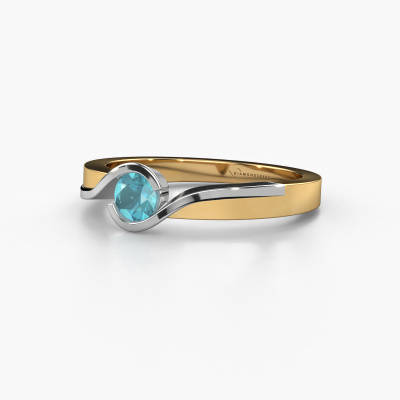 This ring called Lola is made of 14 Carat gold and is set with blue topaz. Are you in the market for a unique gold ring with a modern twist? Then this ring might suit you. Simply customize to your or her liking. It suits the contemporary modern woman. This stylish ring is set with beautiful blue topaz. This has been carefully selected. Because your ring must be adorned with nothing but the most stunning gemstone. Our expert goldsmith will create your ring in our own studio, where the blue topaz will be set with great care. The ring will then be polished to perfection to create a stunning ring. Because we design and deliver our own rings, we can offer you a ring at a price you won't find anywhere else. A ring is made to order, which helps prevent excess supplies, so we can make you a great price offer. We understand it feels risky, buying your ring online, but we will gladly assist in the designing process, taking your budget into consideration.Our team of talented, passionate designers add new ring designs to our online collection daily. Our objective in doing so, is to be able to offer you a wide variety of jewels. Please feel free to request a quote if you have specific wishes for your ring. We guarantee to make you an offer you can't refuse.To make it easier for you, we offer a 30 day return policy. Check our terms and conditions.