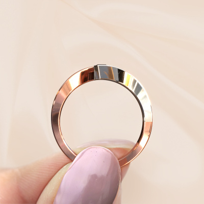This ring called Evalyn 1 is made of 14 Carat rose gold and is set with black diamond. Are you in the market for a unique rose gold ring with a modern twist? Then this ring might suit you. Simply customize to your or her liking. It suits the contemporary modern woman. This stylish ring is set with beautiful black diamond. This has been carefully selected. Because your ring must be adorned with nothing but the most stunning gemstone. Our expert goldsmith will create your ring in our own studio, where the black diamond will be set with great care. The ring will then be polished to perfection to create a stunning ring. By using a combination of the latest modern techniques, combined with ancient crafting, we can make all our rings in our own studio. Each jewel is made to order. This is advantageous because we can offer you a price you won't find anywhere else.New jewellery designs are added to our online collection daily. Our team of passionate designers strive to create extraordinary and diverse designs. Have you seen a ring you like? Please feel free to contact us. Based on a good price/ quality ratio, we will make you an offer you can't refuse!To make it easier for you, we offer a 30 day return policy. Check our terms and conditions.