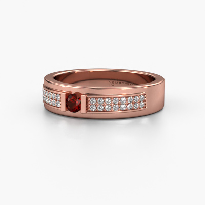 This ring called Mable is made of 14 Carat rose gold and is set with garnet. Are you in the market for a unique rose gold ring with a modern twist? Then this ring might suit you. Simply customize to your or her liking. It suits the contemporary modern woman. This stylish ring is set with beautiful garnet. This has been carefully selected. Because your ring must be adorned with nothing but the most stunning gemstone. Our expert goldsmith will create your ring in our own studio, where the garnet will be set with great care. The ring will then be polished to perfection to create a stunning ring. After receiving your order, our goldsmiths will passionately start the creative process of making your ring in our own studio. Because we don't have a big stockpile, these costs will not be passed on to you. Our pricing is proof of that! We offer top quality jewels at lowest price, guaranteed.New jewellery designs are added to our online collection daily. Our team of passionate designers strive to create extraordinary and diverse designs. Have you seen a ring you like? Please feel free to contact us. Based on a good price/ quality ratio, we will make you an offer you can't refuse!To make it easier for you, we offer a 30 day return policy. Check our terms and conditions.