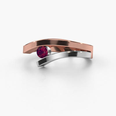 This ring called Evalyn 1 is made of 14 Carat rose gold and is set with rhodolite. Are you in the market for a unique rose gold ring with a modern twist? Then this ring might suit you. Simply customize to your or her liking. It suits the contemporary modern woman. This stylish ring is set with beautiful rhodolite. This has been carefully selected. Because your ring must be adorned with nothing but the most stunning gemstone. Our expert goldsmith will create your ring in our own studio, where the rhodolite will be set with great care. The ring will then be polished to perfection to create a stunning ring. By using a combination of the latest modern techniques, combined with ancient crafting, we can make all our rings in our own studio. Each jewel is made to order. This is advantageous because we can offer you a price you won't find anywhere else.New jewellery designs are added to our online collection daily. Our team of passionate designers strive to create extraordinary and diverse designs. Have you seen a ring you like? Please feel free to contact us. Based on a good price/ quality ratio, we will make you an offer you can't refuse!To make it easier for you, we offer a 30 day return policy. Check our terms and conditions.