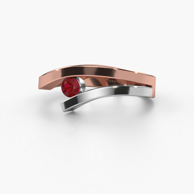 This ring called Evalyn 1 is made of 14 Carat rose gold and is set with ruby. Are you in the market for a unique rose gold ring with a modern twist? Then this ring might suit you. Simply customize to your or her liking. It suits the contemporary modern woman. This stylish ring is set with beautiful ruby. This has been carefully selected. Because your ring must be adorned with nothing but the most stunning gemstone. Our expert goldsmith will create your ring in our own studio, where the ruby will be set with great care. The ring will then be polished to perfection to create a stunning ring. By using a combination of the latest modern techniques, combined with ancient crafting, we can make all our rings in our own studio. Each jewel is made to order. This is advantageous because we can offer you a price you won't find anywhere else.New jewellery designs are added to our online collection daily. Our team of passionate designers strive to create extraordinary and diverse designs. Have you seen a ring you like? Please feel free to contact us. Based on a good price/ quality ratio, we will make you an offer you can't refuse!To make it easier for you, we offer a 30 day return policy. Check our terms and conditions.