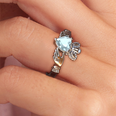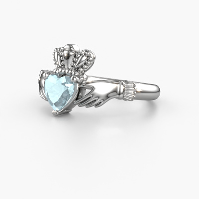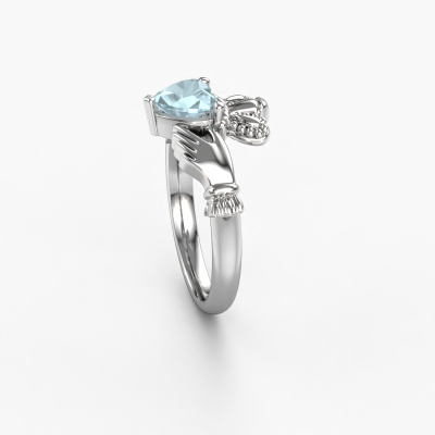 This Irish Claddagh ring is a sign of love set with a heart aquamarine. It is a remarkable, symbolic ring in which a crowned heart, held by two hands, is shown. The heart of a Claddagh ring is a symbol of love, the hands represent friendship and the crown, loyalty. A beautiful piece of jewellery to either give or receive! This symbolic platinum Claddagh 2 ring is made by hand in our own studio by our expert goldsmiths. The symbolic Claddagh 2 ring, as shown here, can be customized to your liking. Our online tool offers many different options but please feel free to contact us if you want changes made to your Claddagh 2 ring, which are unavailable in our online tool.After receiving your order, our goldsmiths will start the creative process of making your Claddagh 2 ring. We don't keep stock. This is advantageous because these costs will not be passed on to you. Therefore, we can offer jewellery at exceptionally low prices.To make it easier for you, we offer a 30 day return policy. Check our terms and conditions.