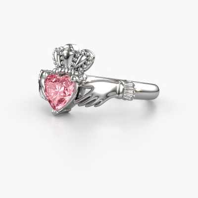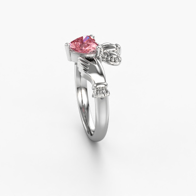This Irish Claddagh ring is a sign of love set with a heart pink lab grown diamond. It is a remarkable, symbolic ring in which a crowned heart, held by two hands, is shown. The heart of a Claddagh ring is a symbol of love, the hands represent friendship and the crown, loyalty. A beautiful piece of jewellery to either give or receive! This symbolic platinum Claddagh 2 ring is made by hand in our own studio by our expert goldsmiths. The symbolic Claddagh 2 ring, as shown here, can be customized to your liking. Our online tool offers many different options but please feel free to contact us if you want changes made to your Claddagh 2 ring, which are unavailable in our online tool.After receiving your order, our goldsmiths will start the creative process of making your Claddagh 2 ring. We don't keep stock. This is advantageous because these costs will not be passed on to you. Therefore, we can offer jewellery at exceptionally low prices.To make it easier for you, we offer a 30 day return policy. Check our terms and conditions.