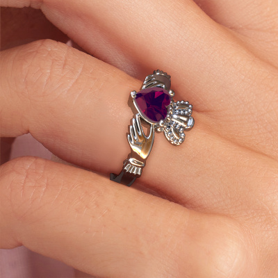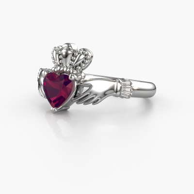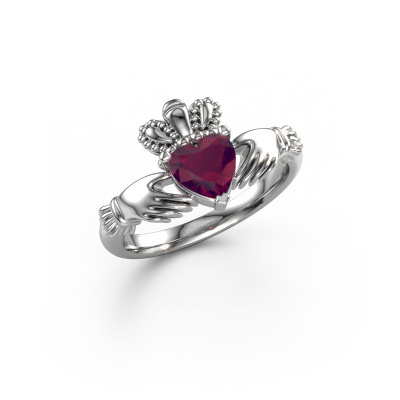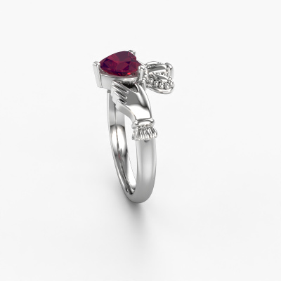 This Irish Claddagh ring is a sign of love set with a heart rhodolite. It is a remarkable, symbolic ring in which a crowned heart, held by two hands, is shown. The heart of a Claddagh ring is a symbol of love, the hands represent friendship and the crown, loyalty. A beautiful piece of jewellery to either give or receive! This symbolic platinum Claddagh 2 ring is made by hand in our own studio by our expert goldsmiths. The symbolic Claddagh 2 ring, as shown here, can be customized to your liking. Our online tool offers many different options but please feel free to contact us if you want changes made to your Claddagh 2 ring, which are unavailable in our online tool.After receiving your order, our goldsmiths will start the creative process of making your Claddagh 2 ring. We don't keep stock. This is advantageous because these costs will not be passed on to you. Therefore, we can offer jewellery at exceptionally low prices.To make it easier for you, we offer a 30 day return policy. Check our terms and conditions.