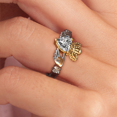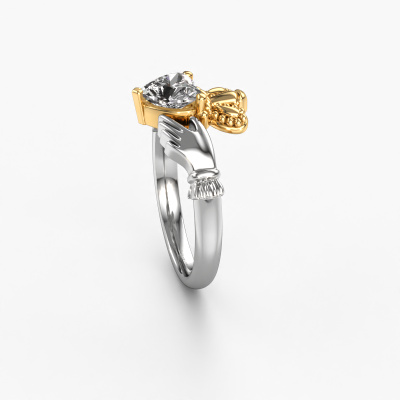 This Irish Claddagh ring is a sign of love set with a heart diamond. It is a remarkable, symbolic ring in which a crowned heart, held by two hands, is shown. The heart of a Claddagh ring is a symbol of love, the hands represent friendship and the crown, loyalty. A beautiful piece of jewellery to either give or receive! This symbolic 14 Carat white gold Claddagh 2 ring is made by hand in our own studio by our expert goldsmiths. The symbolic Claddagh 2 ring, as shown here, can be customized to your liking. Our online tool offers many different options but please feel free to contact us if you want changes made to your Claddagh 2 ring, which are unavailable in our online tool.After receiving your order, our goldsmiths will start the creative process of making your Claddagh 2 ring. We don't keep stock. This is advantageous because these costs will not be passed on to you. Therefore, we can offer jewellery at exceptionally low prices.To make it easier for you, we offer a 30 day return policy. Check our terms and conditions.