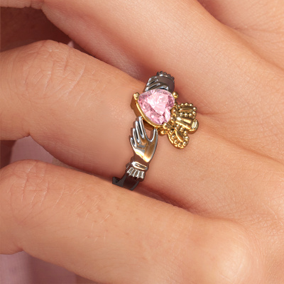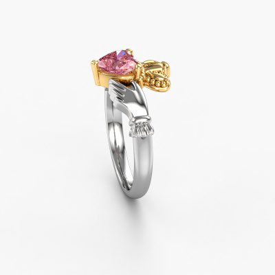 This Irish Claddagh ring is a sign of love set with a heart pink lab grown diamond. It is a remarkable, symbolic ring in which a crowned heart, held by two hands, is shown. The heart of a Claddagh ring is a symbol of love, the hands represent friendship and the crown, loyalty. A beautiful piece of jewellery to either give or receive! This symbolic 14 Carat white gold Claddagh 2 ring is made by hand in our own studio by our expert goldsmiths. The symbolic Claddagh 2 ring, as shown here, can be customized to your liking. Our online tool offers many different options but please feel free to contact us if you want changes made to your Claddagh 2 ring, which are unavailable in our online tool.After receiving your order, our goldsmiths will start the creative process of making your Claddagh 2 ring. We don't keep stock. This is advantageous because these costs will not be passed on to you. Therefore, we can offer jewellery at exceptionally low prices.To make it easier for you, we offer a 30 day return policy. Check our terms and conditions.