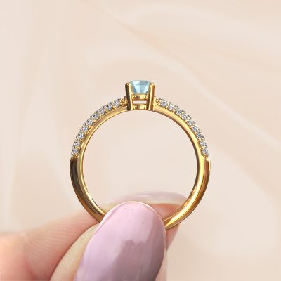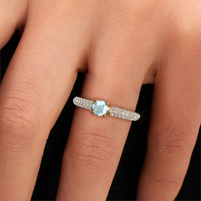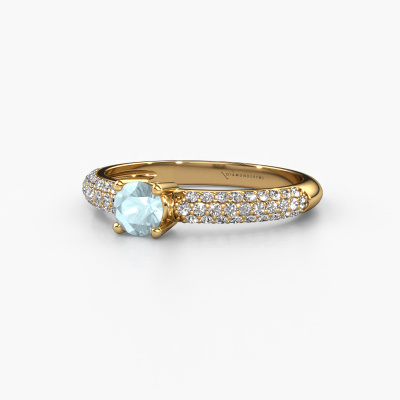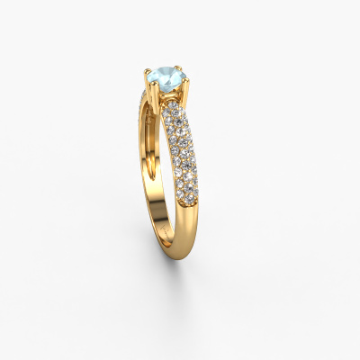 This pave set ring is called Marjan. This 14 Carat gold ring is set with aquamarine 4.2 mm. The band of this gold ring is set with rows of aquamarine which seem to have no beginning nor end. Our goldsmith carefully selects the gemstones and sets them with the utmost precision. For maximum shine, the aquamarine have to align perfectly. While artfully crafting and polishing the jewellery, light fall is constantly monitored, until the expert goldsmith is satisfied with the result. Designed by you, created especially for you!Our goldsmiths passionately create your customized ring to your liking with the utmost care. The gold ring, as shown here, can be customized using our online tool. Feel free to ask our jewel designers for assistance if you want changes made which are unavailable in our online tool. We are happy to answer your questions.After receiving your order, our goldsmiths will passionately start the creative process of making your ring in our own studio. Because we don't have a big stockpile, these costs will not be passed on to you. Our pricing is proof of that! We offer top quality jewels at lowest price, guaranteed.To make it easier for you, we offer a 30 day return policy. Check our terms and conditions.