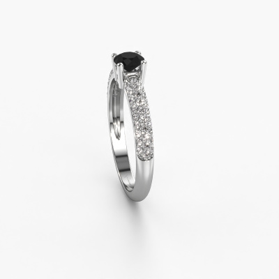 This pave set ring is called Marjan. This platinum ring is set with black diamonds 0.722 crt. The band of this platinum ring is set with rows of black diamonds which seem to have no beginning nor end. Our goldsmith carefully selects the gemstones and sets them with the utmost precision. For maximum shine, the black diamonds have to align perfectly. While artfully crafting and polishing the jewellery, light fall is constantly monitored, until the expert goldsmith is satisfied with the result. Designed by you, created especially for you!