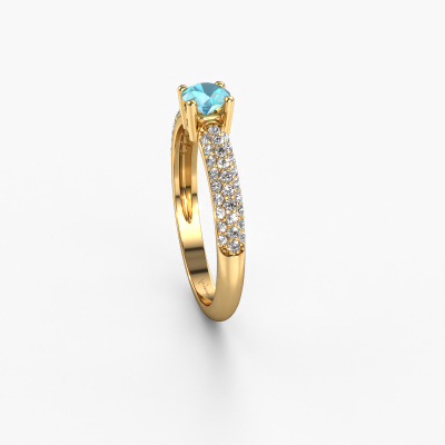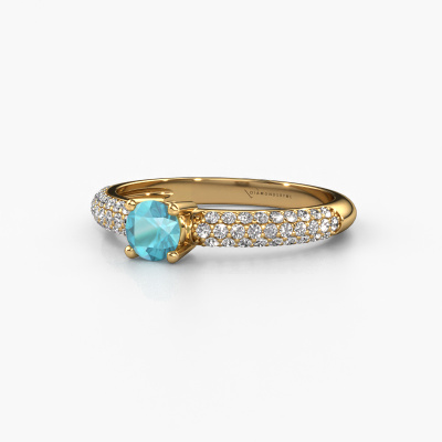 This pave set ring is called Marjan. This 14 Carat gold ring is set with blue topaz 4.2 mm. The band of this gold ring is set with rows of blue topaz which seem to have no beginning nor end. Our goldsmith carefully selects the gemstones and sets them with the utmost precision. For maximum shine, the blue topaz have to align perfectly. While artfully crafting and polishing the jewellery, light fall is constantly monitored, until the expert goldsmith is satisfied with the result. Designed by you, created especially for you!Our goldsmiths passionately create your customized ring to your liking with the utmost care. The gold ring, as shown here, can be customized using our online tool. Feel free to ask our jewel designers for assistance if you want changes made which are unavailable in our online tool. We are happy to answer your questions.After receiving your order, our goldsmiths will passionately start the creative process of making your ring in our own studio. Because we don't have a big stockpile, these costs will not be passed on to you. Our pricing is proof of that! We offer top quality jewels at lowest price, guaranteed.To make it easier for you, we offer a 30 day return policy. Check our terms and conditions.