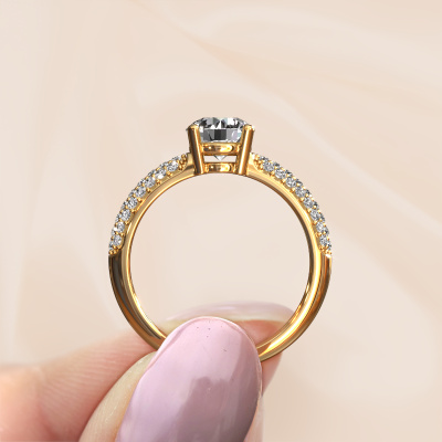 This pave set ring is called Marjan. This 14 Carat gold ring is set with diamonds 1.369 crt. The band of this gold ring is set with rows of diamonds which seem to have no beginning nor end. Our goldsmith carefully selects the gemstones and sets them with the utmost precision. For maximum shine, the diamonds have to align perfectly. While artfully crafting and polishing the jewellery, light fall is constantly monitored, until the expert goldsmith is satisfied with the result. Designed by you, created especially for you!Our goldsmiths passionately create your customized ring to your liking with the utmost care. The gold ring, as shown here, can be customized using our online tool. Feel free to ask our jewel designers for assistance if you want changes made which are unavailable in our online tool. We are happy to answer your questions.After receiving your order, our goldsmiths will passionately start the creative process of making your ring in our own studio. Because we don't have a big stockpile, these costs will not be passed on to you. Our pricing is proof of that! We offer top quality jewels at lowest price, guaranteed.To make it easier for you, we offer a 30 day return policy. Check our terms and conditions.