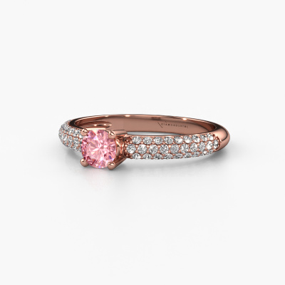 This pave set ring is called Marjan. This 14 Carat rose gold ring is set with pink lab grown diamonds 4.2 mm. The band of this rose gold ring is set with rows of pink lab grown diamonds which seem to have no beginning nor end. Our goldsmith carefully selects the gemstones and sets them with the utmost precision. For maximum shine, the pink lab grown diamonds have to align perfectly. While artfully crafting and polishing the jewellery, light fall is constantly monitored, until the expert goldsmith is satisfied with the result. Designed by you, created especially for you!