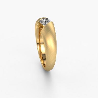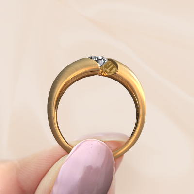 This ring called Hojalien 1 is made of 14 Carat gold and is set with diamond. Are you in the market for a unique gold ring with a modern twist? Then this ring might suit you. Simply customize to your or her liking. It suits the contemporary modern woman. This tasteful ring is set with beautiful diamond. This has been carefully selected. Because your ring must be adorned with nothing but the most stunning gemstone. Our expert goldsmith will create your ring in our own studio, where the diamond will be set with great care. The ring will then be polished to perfection to create a stunning ring. By using our modern techniques, we can design and customize the finest quality jewels with the utmost care for you. Our rings are always priced 30 percent lower than other jewellers. We make rings to order, so we don't have to maintain a large stock. If you have a certain budget, we are more than happy to advice you accordingly.